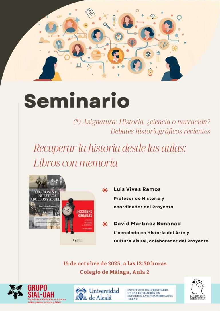 El IELAT se complace en invitarle al Seminario “Recuperar la historia desde las aulas: Libros con memoria”. El evento se celebrará de manera presencial el 15 de octubre a las 12:30 (horario peninsular) y tendrá lugar en el Aula 2 del Colegio de Málaga, de la Universidad de Alcalá.