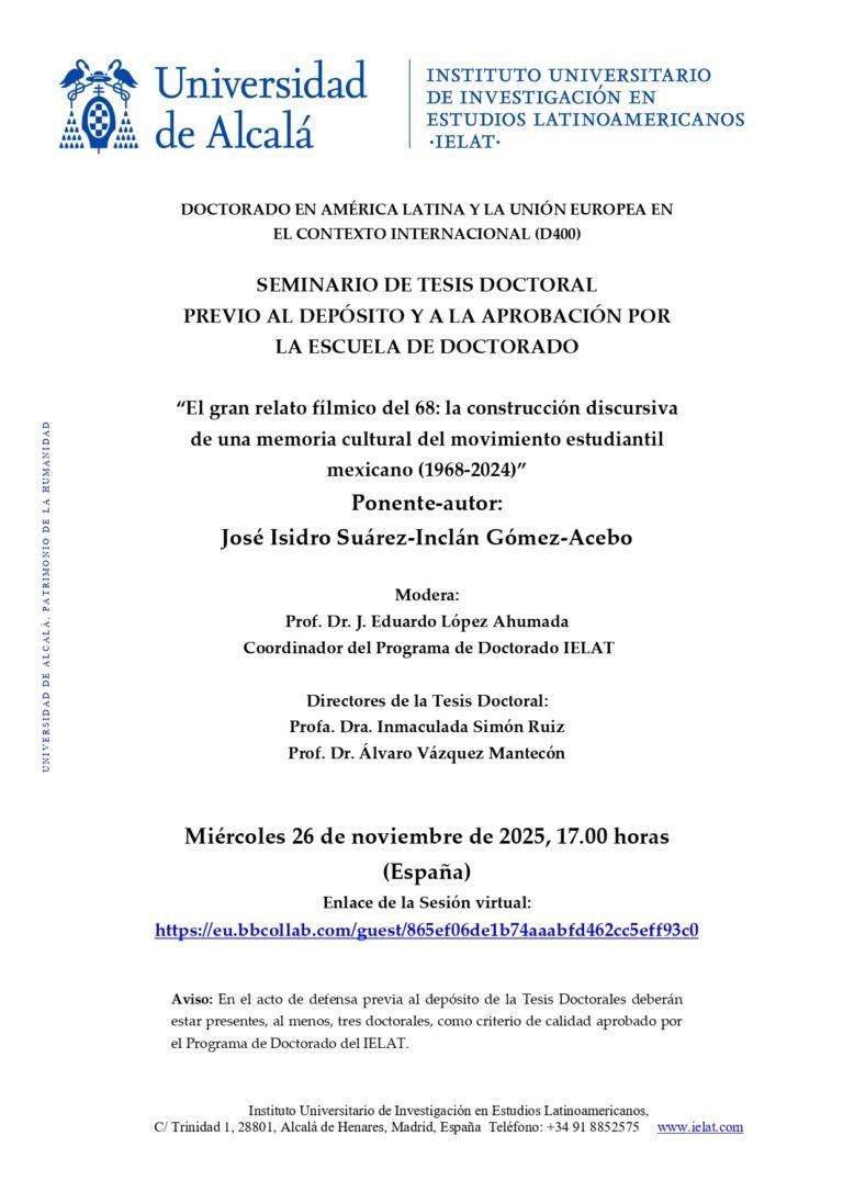 El IELAT se complace en invitarle a los «Seminarios de Tesis Doctoral Previos al Depósito y a la Aprobación Por la Escuela de Doctorado». El evento se celebrará en formato virtual y tendrá lugar el 26 de noviembre de 2025 a las 17:00 (horario peninsular de España).
