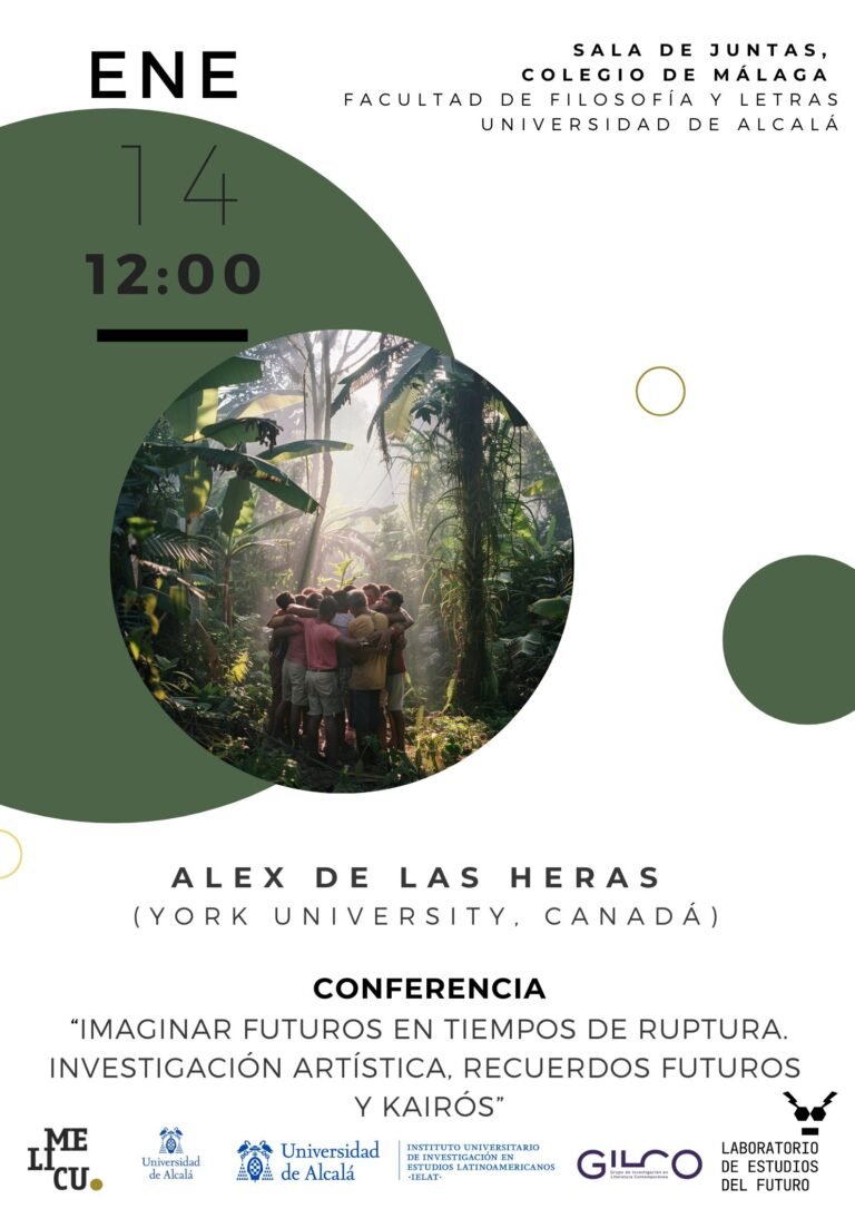 El IELAT se complace en invitarle a la conferencia titulada: «Imaginar futuros en tiempos de ruptura. Investigación artística, recuerdos futuros y Kairós», que se llevará a cabo el 14 de enero de 2026 a las 12:00 (horario peninsular), en la Sala de Juntas de la Facultad de Filosofía y Letras de la Universidad de Alcalá. Se adjunta la información completa del evento.